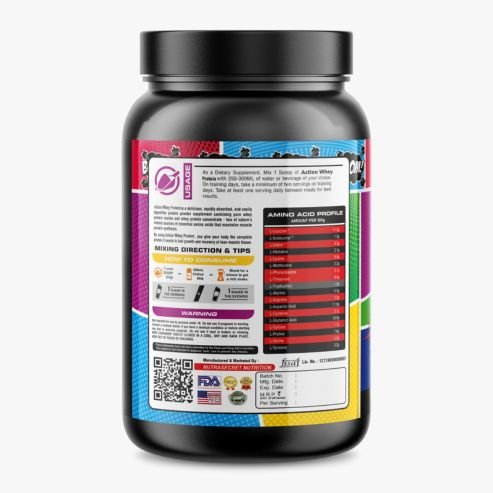 • Action Whey Protein is 100% authentic and goes through stringent analysis before it finally reaches the customers. It is manufactured at an FSSAI approved and GMP certified manufacturing plant. The supplement includes the best ever blend of Whey protein concentrate and Whey protein to boost your power within and promote optimal gains. The product allows you to validate the authenticity before opening the seal.